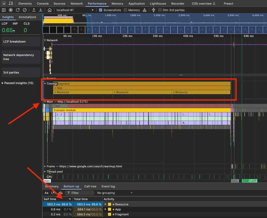 This is not the case with every framework, mind you; for instance, Preact takes the right approach, enhancing the existing browser dev tools with framework-specific information. So if you run a browser profile on your Preact web app with the dev tools enabled, you’ll get some helpful markers added to the native browser profile, indicating when a component renders, for example. This lets you make sense of what’s happening in the browser layer as a result of the framework layer, so you can more quickly zero in on the code that’s seemingly causing a lot of garbage collection passes, or the component that’s triggering layout refreshes at an inconvenient time.